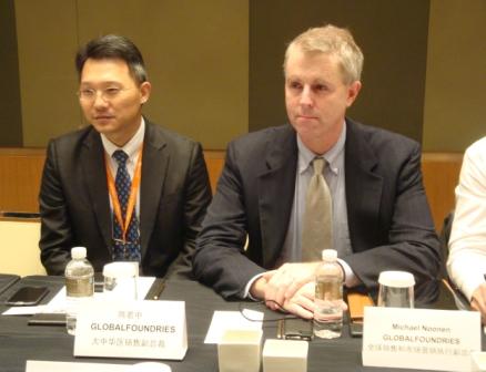 GLOBALFOUNDRIES大中華區(qū)銷售副總裁陳若中(左)與全球銷售和市場營銷執(zhí)行副總裁Michael Noonen(右)答記者問