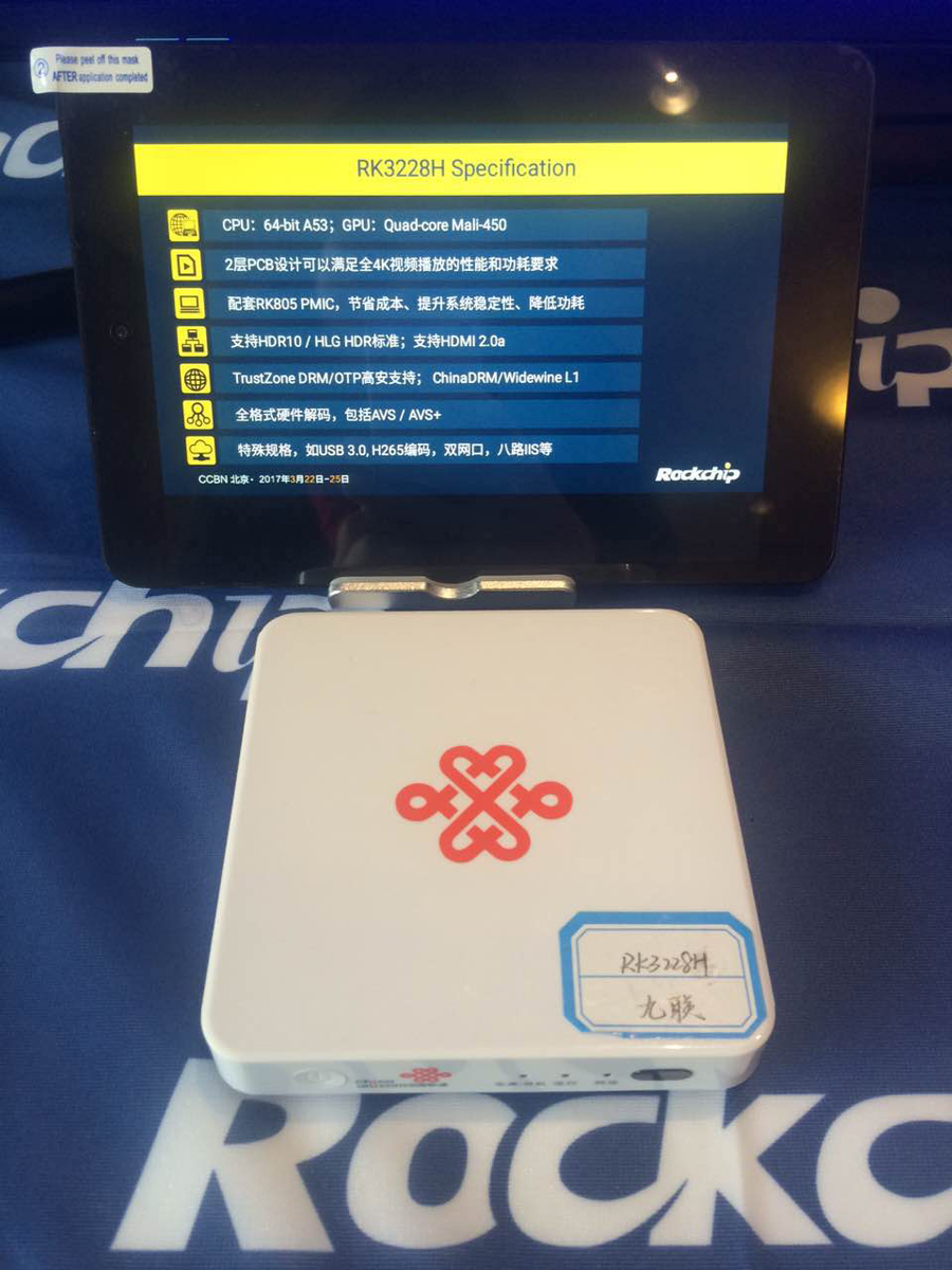 Rockchip在CCBN2017展出搭載四核超優(yōu)性?xún)r(jià)比的機(jī)頂盒芯片產(chǎn)品RK3228B以及高性能的機(jī)頂盒芯片產(chǎn)品3228H。方案亮點(diǎn)涵蓋: