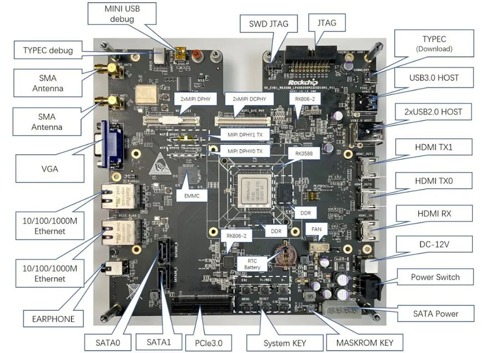 圖:RK3588S EVB 功能接口正面分布圖